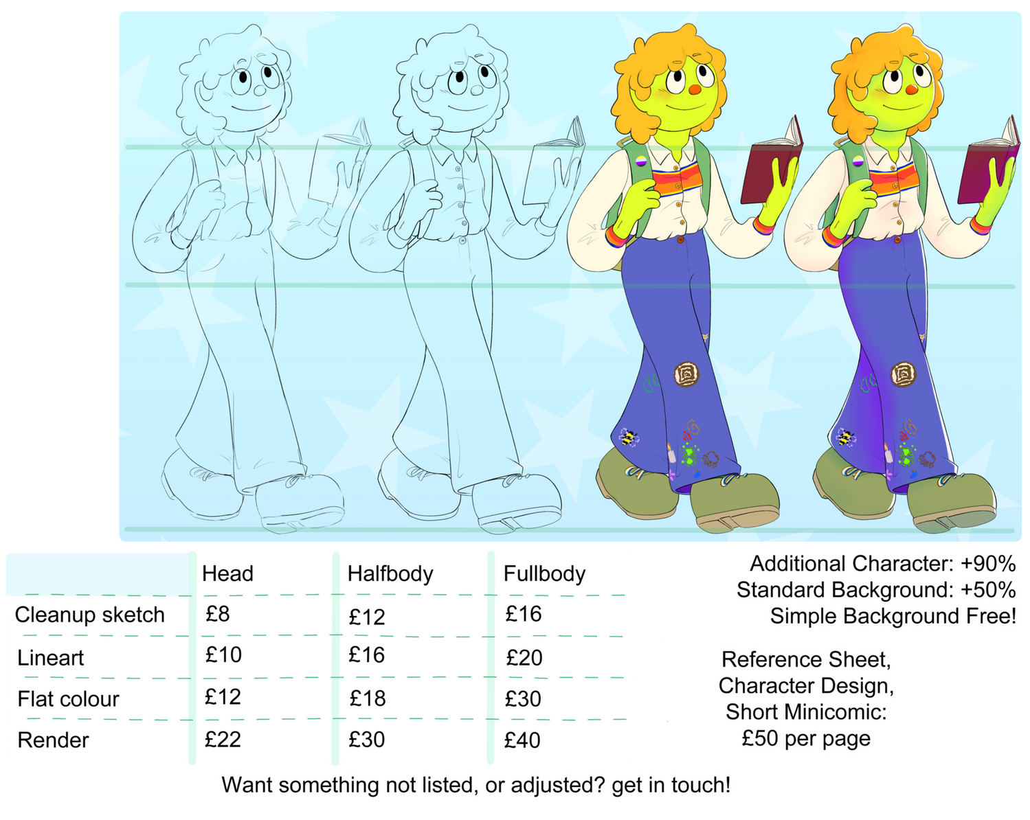 | Commissions Table (Accessible) | Head | Halfbody | Fullbody |
